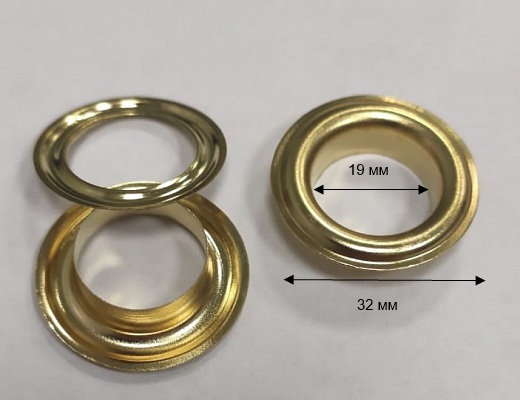 Люверс круглой формы. Внутренний диаметр отверстия 19 мм. Крепление развальцовкой. Покрытие gold