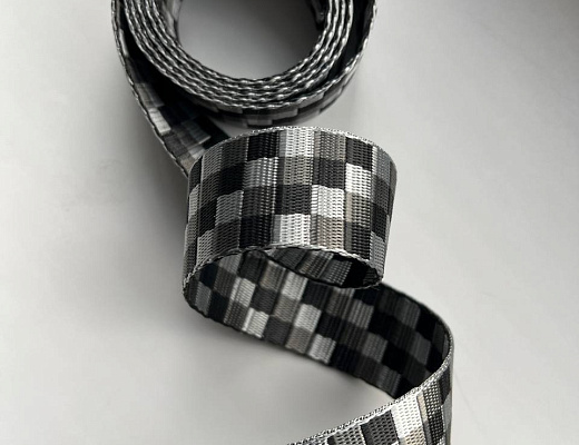 Стропа 3,8 см цветная (45,3 м) THC-38-137 квадрат серый-черный-зеленый